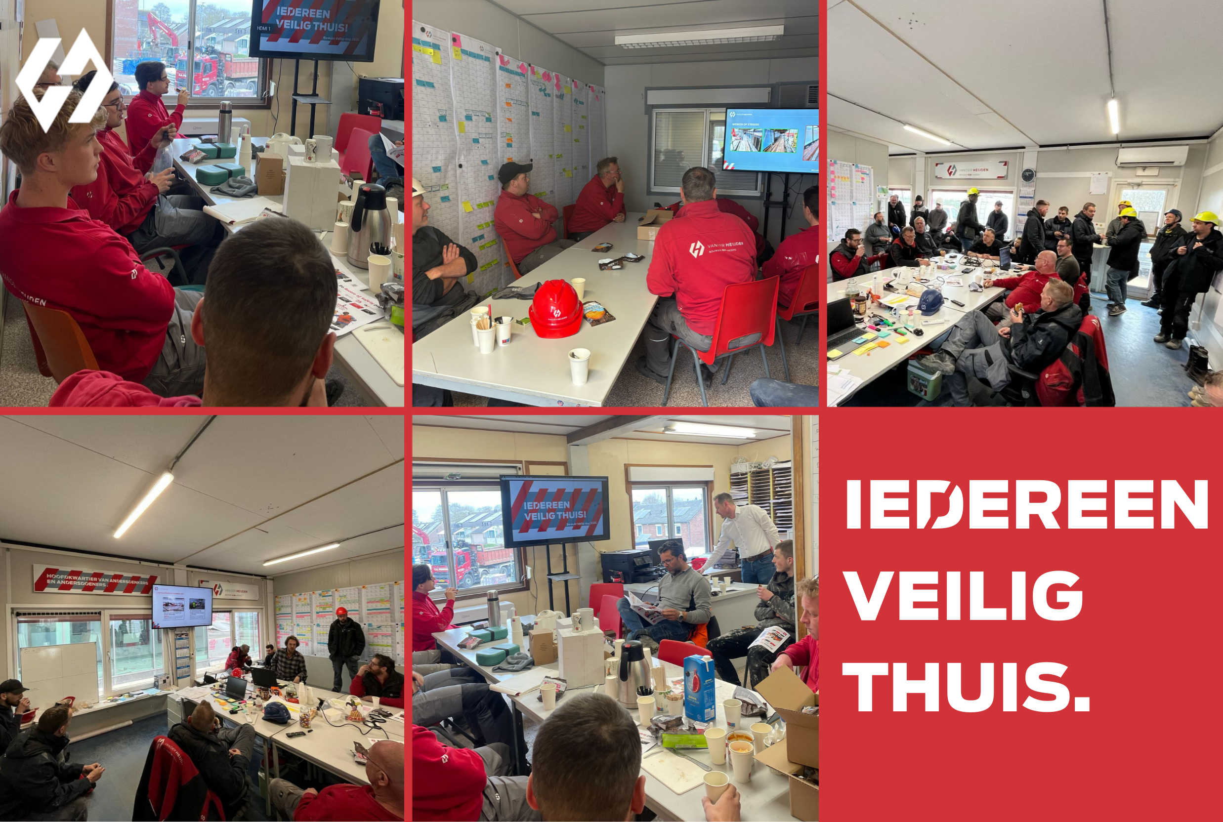 Alle projectlocaties van Klomp stonden deze dag in het teken van veilig werken. Ook directie, projectleiders en management waren op de werkvloer aanwezig. Hier organiseerde het bedrijf inspecties en toolboxsessies om veiligheid zichtbaar én persoonlijk te maken. Ook legden ze uit hoe collega's voortaan eenvoudig (bijna-)ongevallen kunnen melden via de eigen Mijn Klomp App.