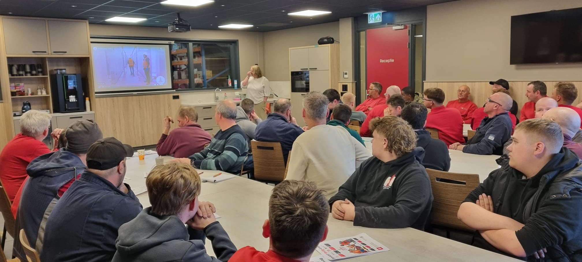 Aan de Stegge Twello organiseerde ‘s ochtends tijdens de Bewust Veilig-dag 2024 zijn eigen toolbox, zowel op projectlocaties als op kantoor. Deze ging over het digitale veiligheidsplatform B-Aware. ‘s Middags sloot het bedrijf aan bij de Bewust Veilig-toolbox ‘Veiligheidsgedrag: risico’s herkennen en bespreekbaar maken’.